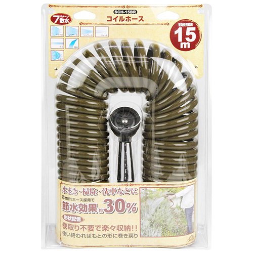 セフティー3 コイルホース 15m ジェット シャワー 広角 7パターン切替 ブラウン SCH-15BR