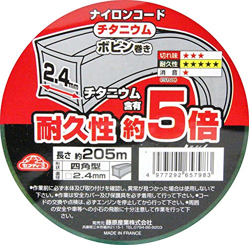 セフティー3 草刈・刈払機用 耐久性約5倍 チタニウムナイロンコード 205m 四角型 2.4mm径