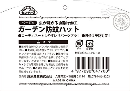 ●【用途】園芸作業用ハット。●【機能・特徴】蚊などの虫が嫌がる防蚊加工を施しています。フード付で日焼け予防でき、コーディネートしやすいリバーシブルタイプです。忌避成分をマイクロカプセル化し、生地表面にコーティング、マイクロカプセルが破れる際に忌避成分を発散します。広めのツバで首もガードします。●【材質】ポリエステル。綿。