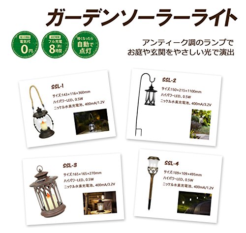 セフティー3 ガーデンソーラーライト アンティーク調LEDライト フル充電8時間点灯 自動点灯 SSL-2