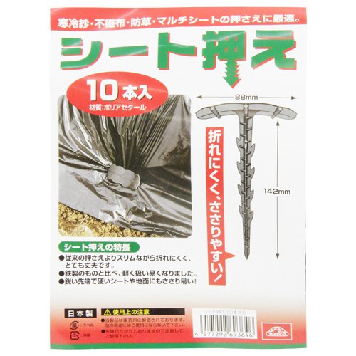 ●【用途】寒冷紗・不織布・防草シート・マルチシートの押さえ。【機能・特徴】マルチ押えより折れにくく、とても丈夫です。鋭い先端で硬いシートや地面にもささり易くなっています。