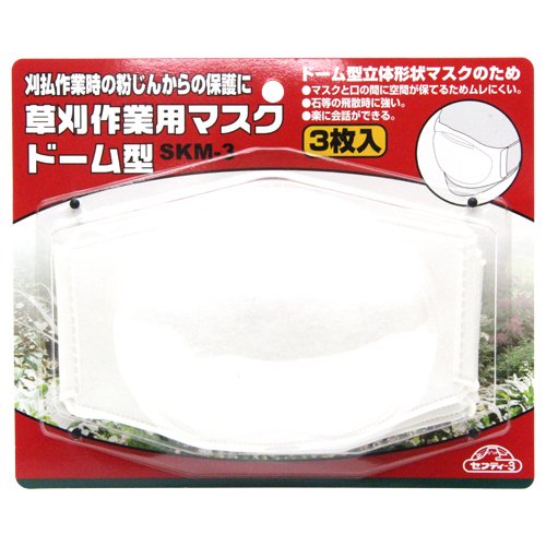セフティー3 草刈作業用マスク ドーム型 立体形状 不織布 抗菌処理加工 3枚入 SKM-3