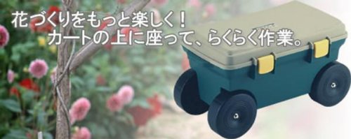 耐荷重:約80kg。カートの上に座ったままで簡単に移動できます。カートの中には、スコップなどのガーデニンググッズをたっぷり収納できます。地面にしゃがんで作業するガーデニングや、釣り、日曜大工などでも大活躍します!