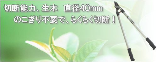 切断能力は、生木直径40mmまで! のこぎり不要でラクラク切断!