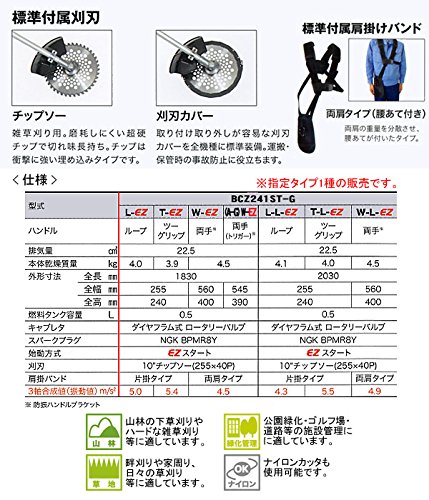 肩掛式刈払機 22.5cc ジュラルミンパイプ 両手(トリガー)ハンドル BCZ241A-GW-EZ