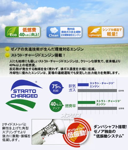 ゼノア(Zenoah)の先進技術が生んだ環境対応エンジンを搭載。排出ガス第2次自主規制にも適合した地球に優しい山林・造園向けの刈払機です。プロも満足のハイパワーで、ナイロンカッターも使用可能。畔刈りや家周り、日々の草刈り等はもちろん、山林の下草刈りやハードな雑草刈り、公園緑地・ゴルフ場・道路など施設の緑化管理にも最適な草刈機です。
