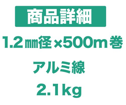 ・1.2mm径×500m巻。・2.1kg。・アルミ線。