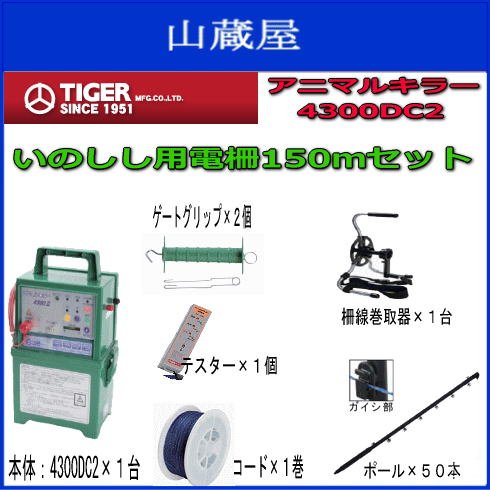 アニマルキラー電気柵 イノシシ用電柵 2段張150mセット[4300DC2(12V電池式)]
