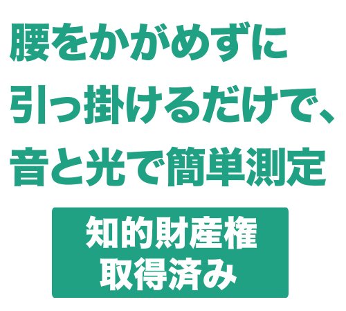 腰をかがめずに引っ掛けるだけで、音と光で簡単測定。