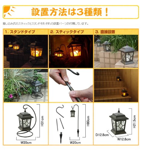 ゴルトランタンソーラーライト スタンドとスティック2種類付き 4個セット