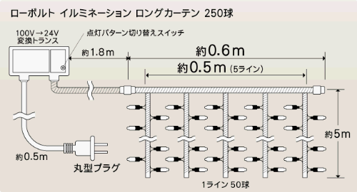 タカショー LIT-LC250C イルミネーション ロングカーテン 250球 49688400