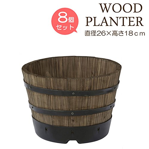 プランター 植木鉢 天然木 ウッドバレルプランター 浅型S 8個セット直径26×高さ18cm 木製 特許取得