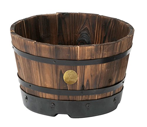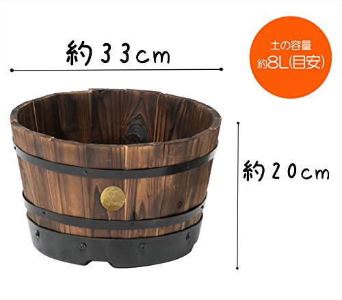 タカショー ウッドバレルプランター 浅型 M PPW-01MN ブラウン 奥行33×高さ20×幅33cm