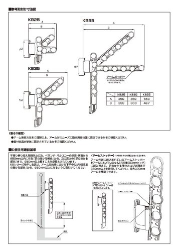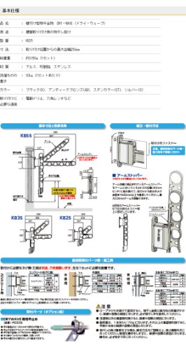 腰壁に取り付けることで、低い位置でもラクラク使える物干し掛け メーカー出荷時状態でお届けします。 躯体に取付けるファスナー類は別売りです。下地・取付方法に応じたファスナーをお求めください。 ・SE・KA・KB用カットアンカーセット(RC造用) ・KA・KB・SD用六角コーチボルトセット ・SE・KA65/75・KAL用コーチスクリューセット(木造用) ・KA・KB・SD用支柱用(□50mmまで)ボルトセット ・KA・KB・SD用支柱用(□70mmまで)ボルトセット オプション ・DRYWAVE 専用竿止め