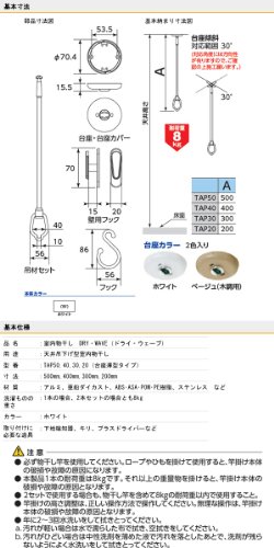 DRY・WAVE(ドライ・ウェーブ) TAP30 室内物干し 1本