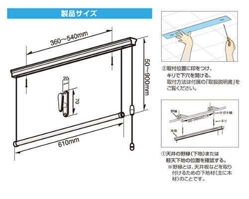 - 【寸法】・本体: 全長610mm ・天井からの昇降: 900mm