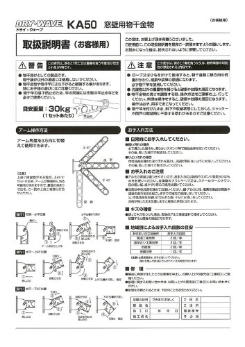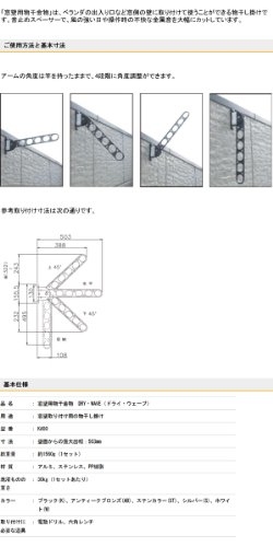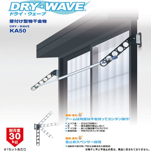 窓際に取り付けて使うことができる物干金物 メーカー出荷時状態でお届けします。 躯体に取付けるファスナー類は別売りです。下地・取付方法に応じたファスナーをお求めください。 ・SE・KA・KB用カットアンカーセット(RC造用) ・KA・KB・SD用六角コーチボルトセット ・KA・KB・SD用支柱用(□50mmまで)ボルトセット ・KA・KB・SD用支柱用(□70mmまで)ボルトセット オプション ・DRYWAVE 専用竿止め