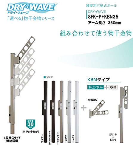 腰壁用可動式ポール+物干金物(DRY・WAVE) ドライ・ウェーブSFK-P+KBN35 ステンカラー(ST) アーム長さ350mm(1セット2本組) 上下スライド式 スリムで洗礼されたデザイン性と確かな品質。