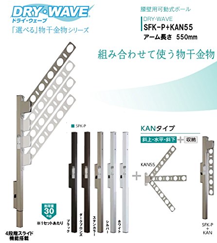 腰壁用可動式ポール+物干金物(DRY・WAVE) ドライ・ウェーブSFK-P+KAN55 ブラック(K) アーム長さ550mm(1セット2本組) 上下スライド式 スリムで洗礼されたデザイン性と確かな品質。