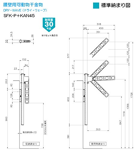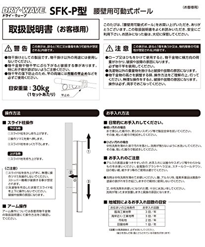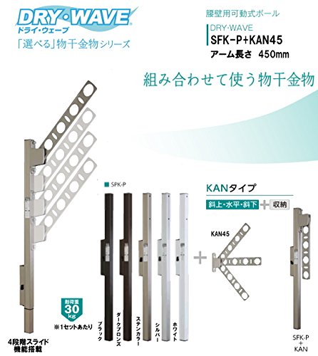 腰壁用可動式ポール+物干金物(DRY・WAVE) ドライ・ウェーブSFK-P+KAN45 ホワイト(W) アーム長さ450mm(1セット2本組) 上下スライド式 スリムで洗礼されたデザイン性と確かな品質。