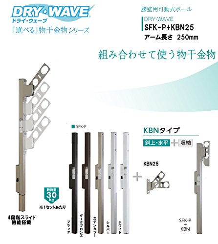 腰壁用可動式ポール+物干金物(DRY・WAVE) ドライ・ウェーブSFK-P+KBN25 ダークブロンズ(BKC) アーム長さ250mm(1セット2本組) 上下スライド式 スリムで洗礼されたデザイン性と確かな品質。