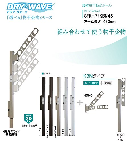 腰壁用可動式ポール+物干金物(DRY・WAVE) ドライ・ウェーブSFK-P+KBN45 ダークブロンズ(BKC) アーム長さ450mm(1セット2本組) 上下スライド式 スリムで洗礼されたデザイン性と確かな品質。
