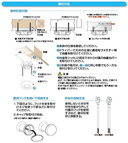- ●はずしたポールセットは壁用フックにかけて収納できます。 ●付属ビスは4x50木造下地用ビスです。