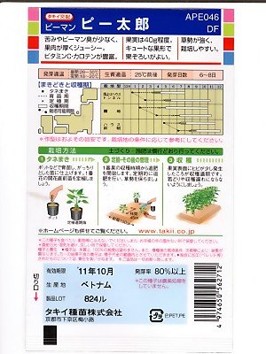 こどもピーマン タキイ交配ピー太郎 タキイ種苗のこどもピーマンの種です