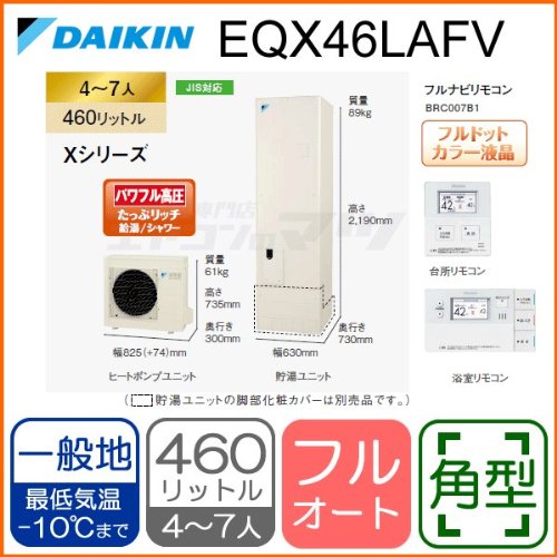 ダイキン エコキュート 【EQX46LAFV】 [フルナビリモコンセット付] フルオート(たっぷリッチ給湯/シャワー) Xシリーズ JIS対応 460L(4~7人用) (15)