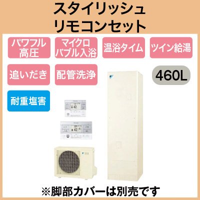 【スタイリッシュリモコン付】 ダイキン エコキュート 耐重塩害仕様 フルオートタイプ 角型 パワフル高圧 460L EQ46TFVH + BRC083A1