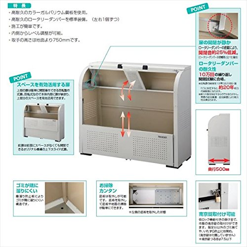 ●高耐久のカラーガルバニウム鋼板を採用し、長い間お使い頂けます。また、容量を確保するために高耐久のロータリーダンパーを左右各1個づつ標準装備しています。これにより、開閉時の操作音が静かな点も魅力です。施工は比較的容易で、内側からのレベル調整が可能となっております。