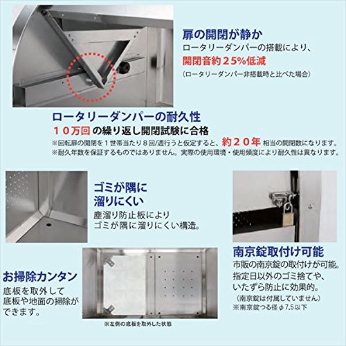 ●フットバーを踏むだけで、回転扉と前扉が連動して開きます。両手がふさがっていても簡単にゴミ捨てができます。上部折戸は軽い力で開閉できるので、ゴミの投入が簡単。