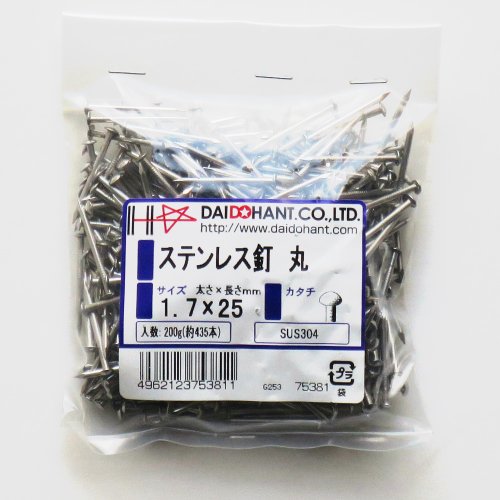ステンレス釘 丸 1.7x25 200g約435本 (VP) 75381 SUS304