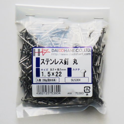 ステンレス釘 丸 1.5x22 200g約616本 (VP) 75380 SUS304