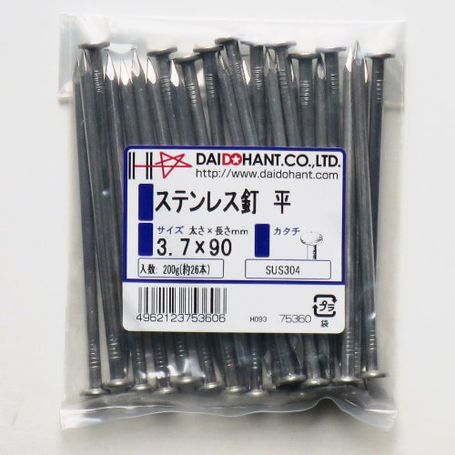 ステンレス釘 平 3.7x90 200g約26本 (VP) 75360 SUS304