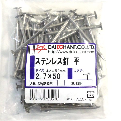 ステンレス釘 平 2.7x50 200g約80本 (VP) 75357 SUS304