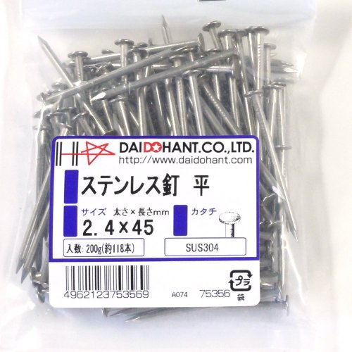 ステンレス釘 平 2.4x45 200g約118本 (VP) 75356 SUS304