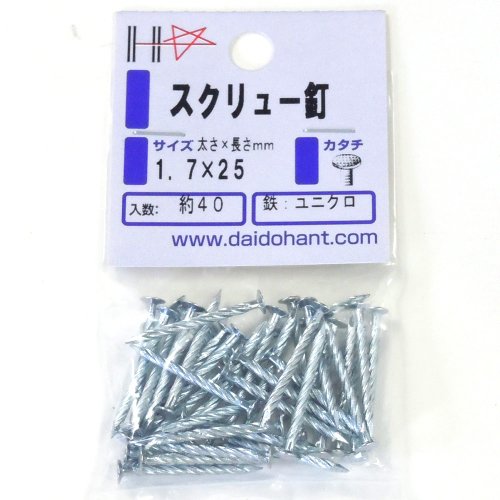 スクリュー釘 1.7x25 約40本 (HP) 83070 鉄:ユニクロ