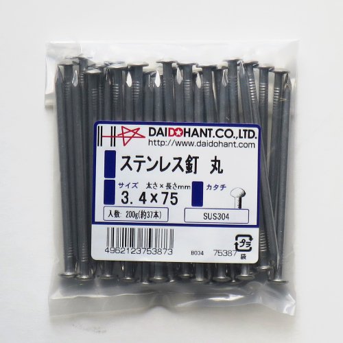 ステンレス釘 丸 3.4x75 200g約37本 (VP) 75387 SUS304