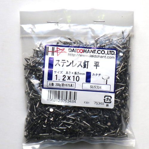 ステンレス釘 平 1.2x10 200g約1875本 (VP) 75348 SUS304