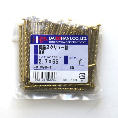真鍮釘スクリュー 200g 2.7x65 約46本 (VP) 75298丸頭