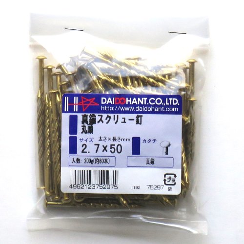 真鍮釘スクリュー 200g 2.7x50 約60本 (VP) 75297丸頭