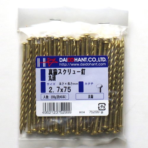 真鍮釘スクリュー 200g 2.7x75 約40本 (VP) 75299丸頭