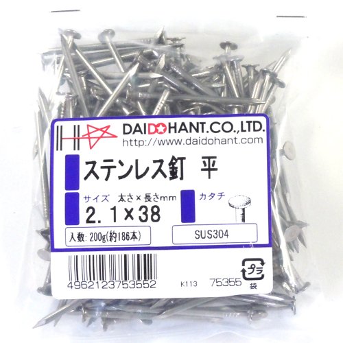 ステンレス釘 平 2.1x38 200g約186本 (VP) 75355 SUS304
