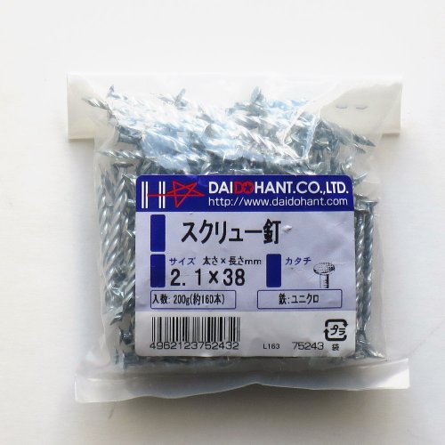 スクリュー釘 200g 2.1x38 約160本 (VP) 75243鉄:ユニクロ