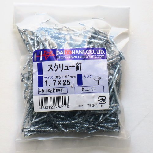 スクリュー釘 200g 1.7x25 約400本 (VP) 75241鉄:ユニクロ