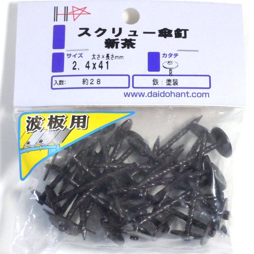 スクリュー傘釘 新茶 2.4x41 約28本 (HP) 85019 鉄:塗装