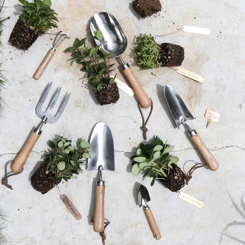タモ材とステンレスの素朴な組合せが、ガーデナーの心を掴むガーデンツールシリーズ。ガーデニングの醍醐味は、植物の成長や四季の移り変わりを日々実感出来ること。じっくり付き合うからこそ、飽きの来ない道具を相棒にしたいですね。革紐付きなので、掛けて収納出来るのも嬉しいポイント。