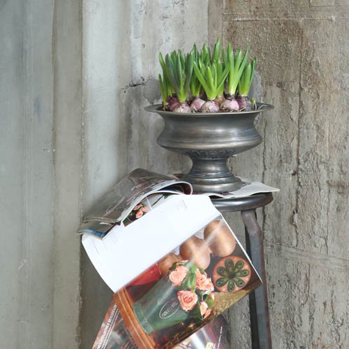 無骨で飾り気が無いだけが、メタルの魅力ではありません。時に上品で気品に溢れ、優雅な佇まいを醸し出すことだってあるのです。そう、それがこちらのメタルベース。美術館に展示されている高脚杯の様なフォルムは、あしらったグリーンもよそ行き顔に仕立てます。オブジェとしての存在感も◎。