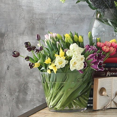 大きなロックグラスの様なデザインの、ガラスベース。シンプルな形状ですが、シャープで汎用性が高いデザインです。中に収めた物の魅力を引き出すので、ショップ等のディスプレイに最適。プロのデコレーターやコーディネーターの方にも人気のアイテムです。ご自宅では非日常の演出に。